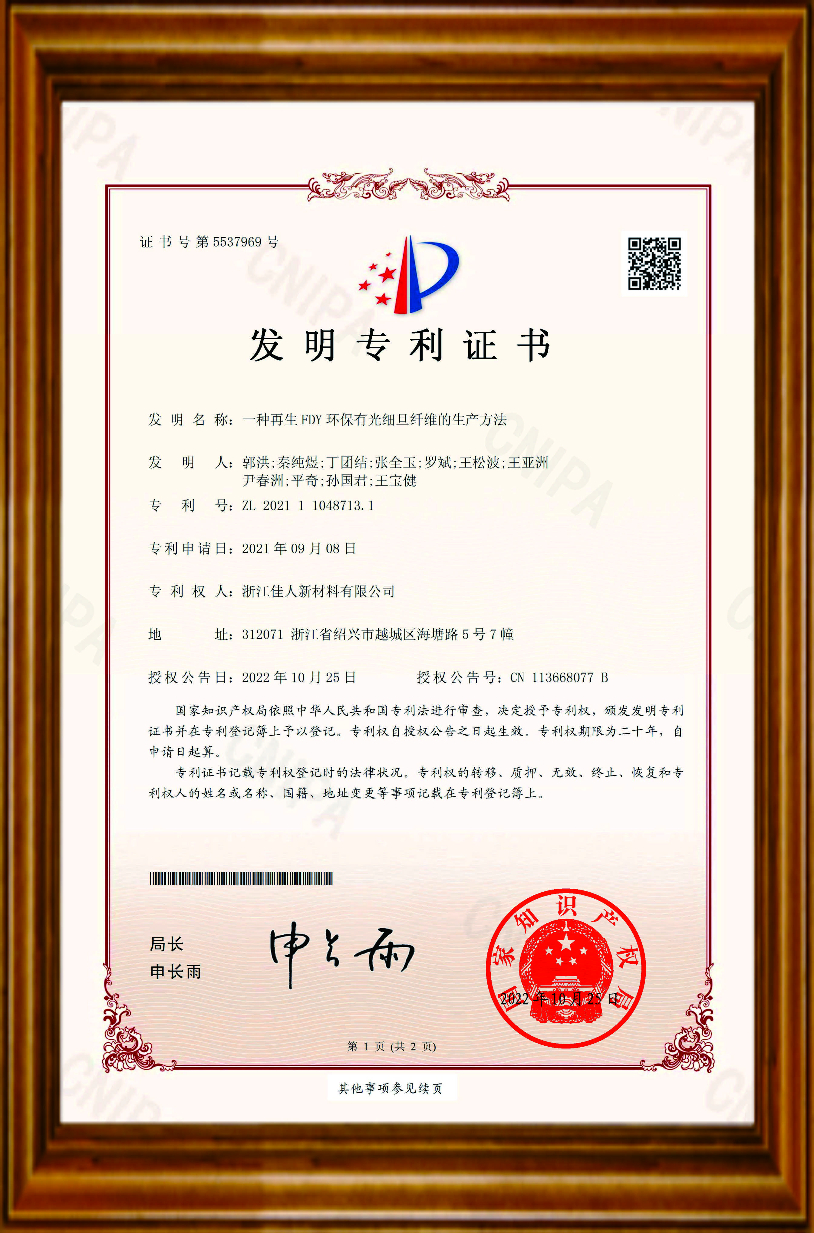 The invention relates to a production method of regenerated FDY environmental friendly glossy fine denier fiber