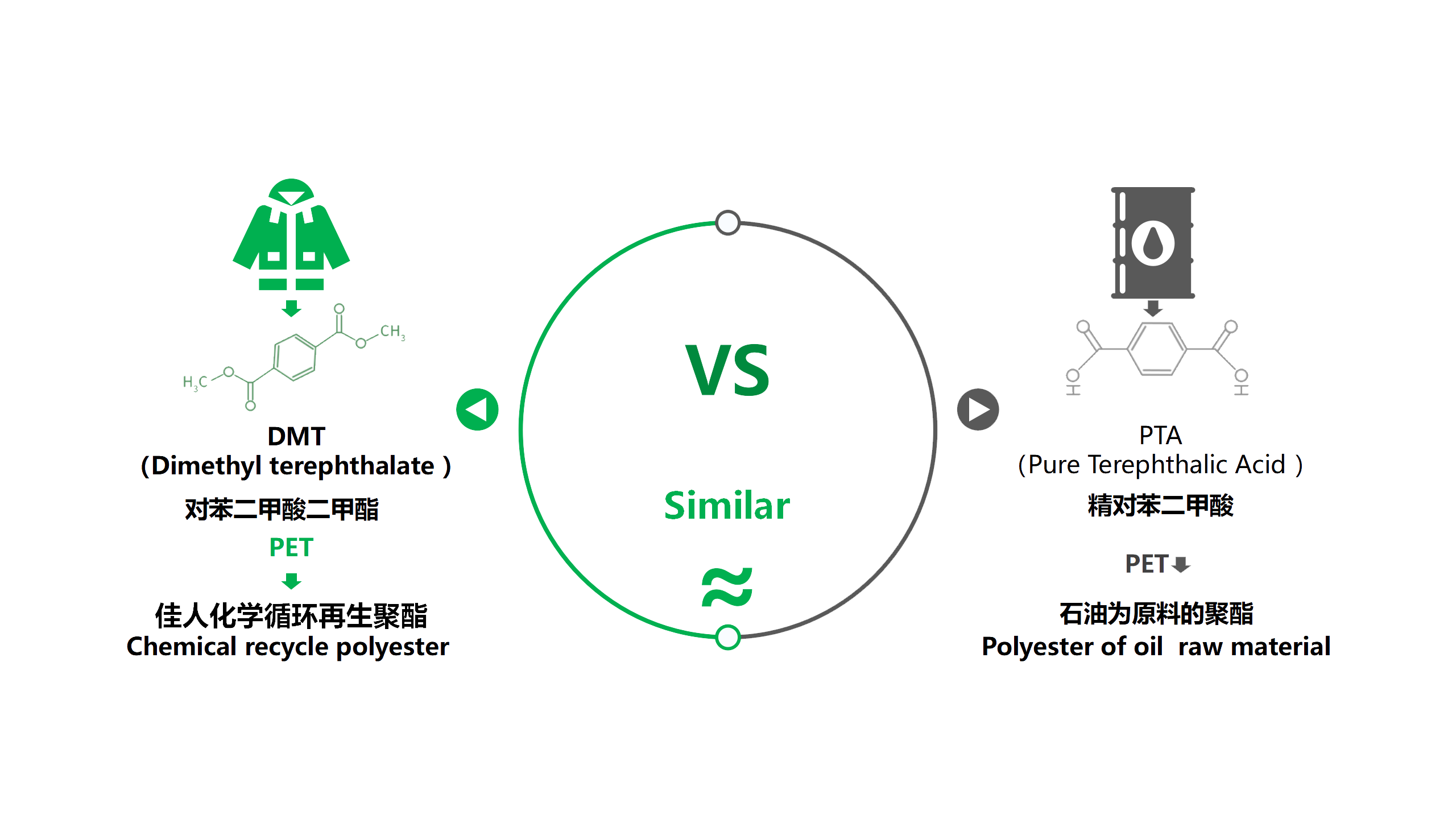 隨著佳人再生DMT產業化,佳人已經構建起再生DMT、再生切片到再生纖維的化學法再生聚酯的高值化差別化延伸應用布局。